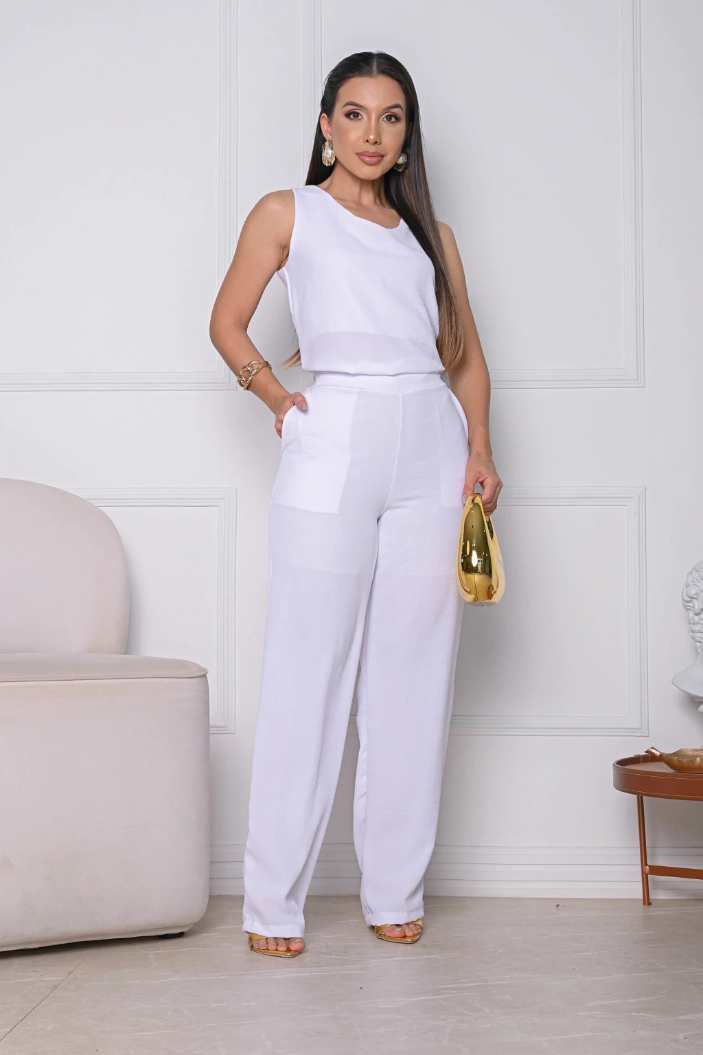 Conjunto de Calça Mais Blusa Manga Cavada Branco - Ester